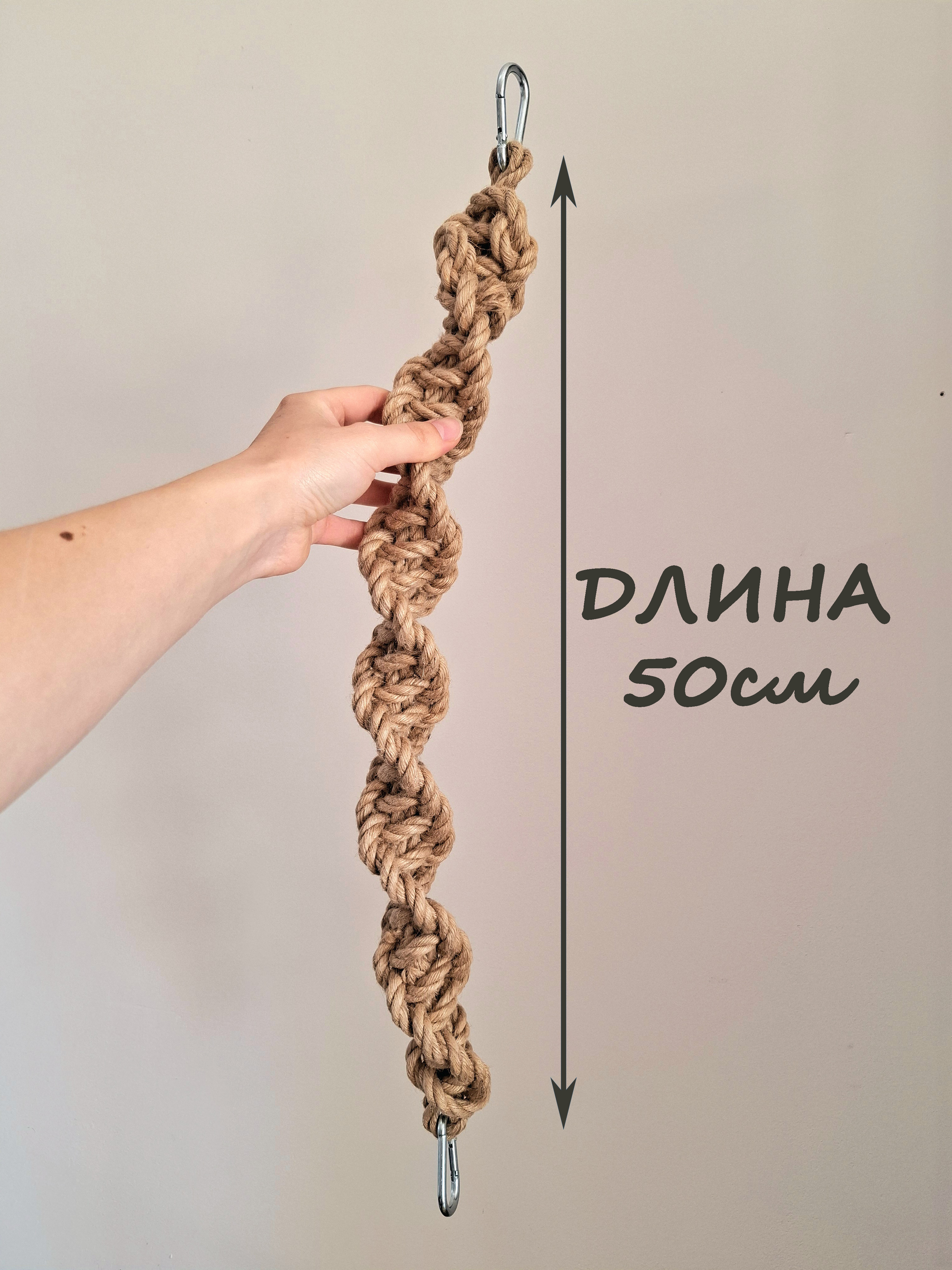 Гибкий канат для попугаев изготовлен из натурального материала - джута. Канат для попугаев может быть использован как в клетках, так и на открытых площадках стендах в качестве насеста для прогулки. Канат жердочка для попугая имеет форму спирали и идеально подходит для тренировки когтей и клюва, что особенно важно для поддержания здоровья. В повседневной жизни канат для птиц помогает развивать ловкость и баланс, что делает их более активными и счастливыми. Верёвочный насест для попугаев из джута создает комфорт и уют, а также украшает клетку.