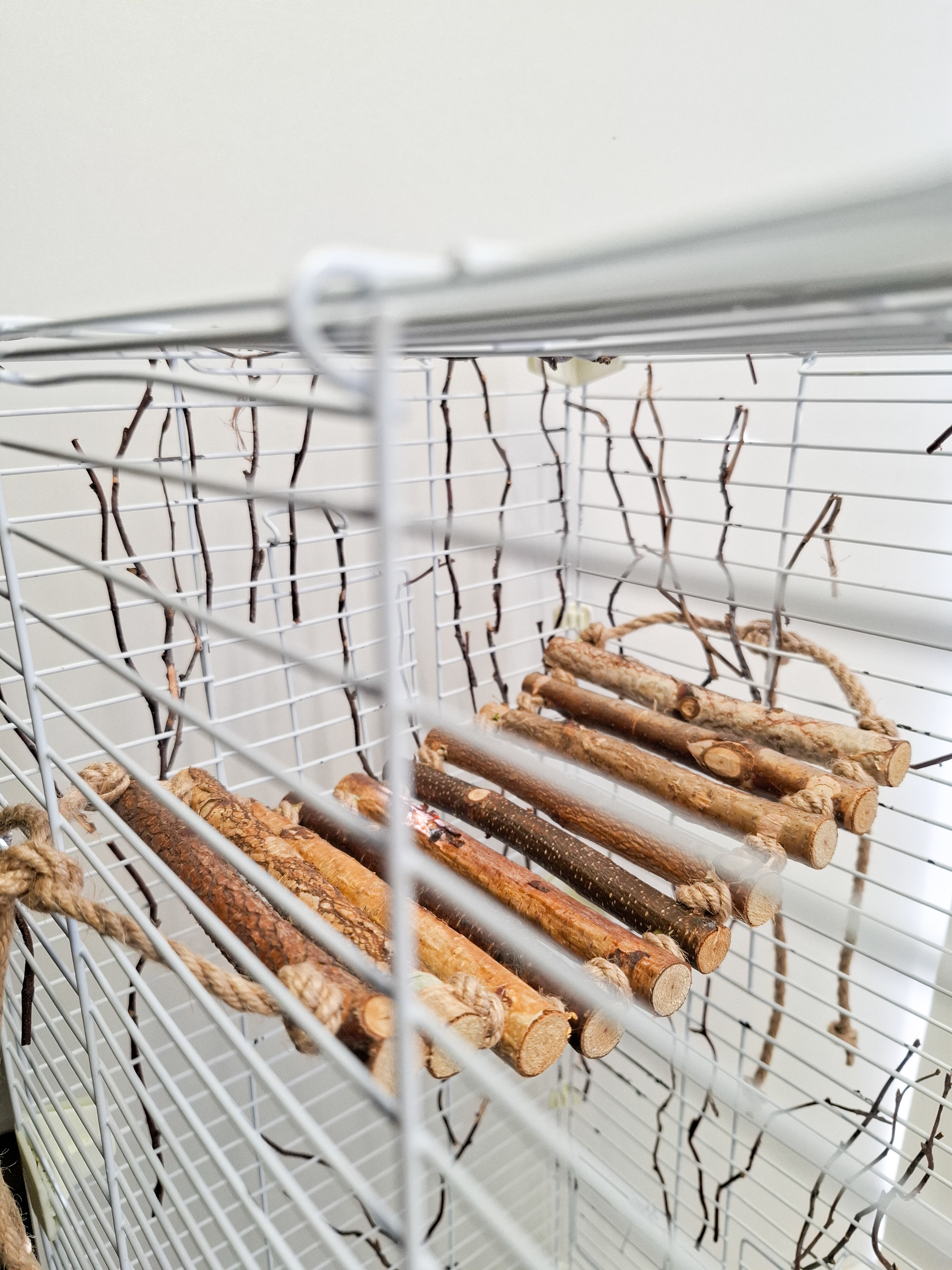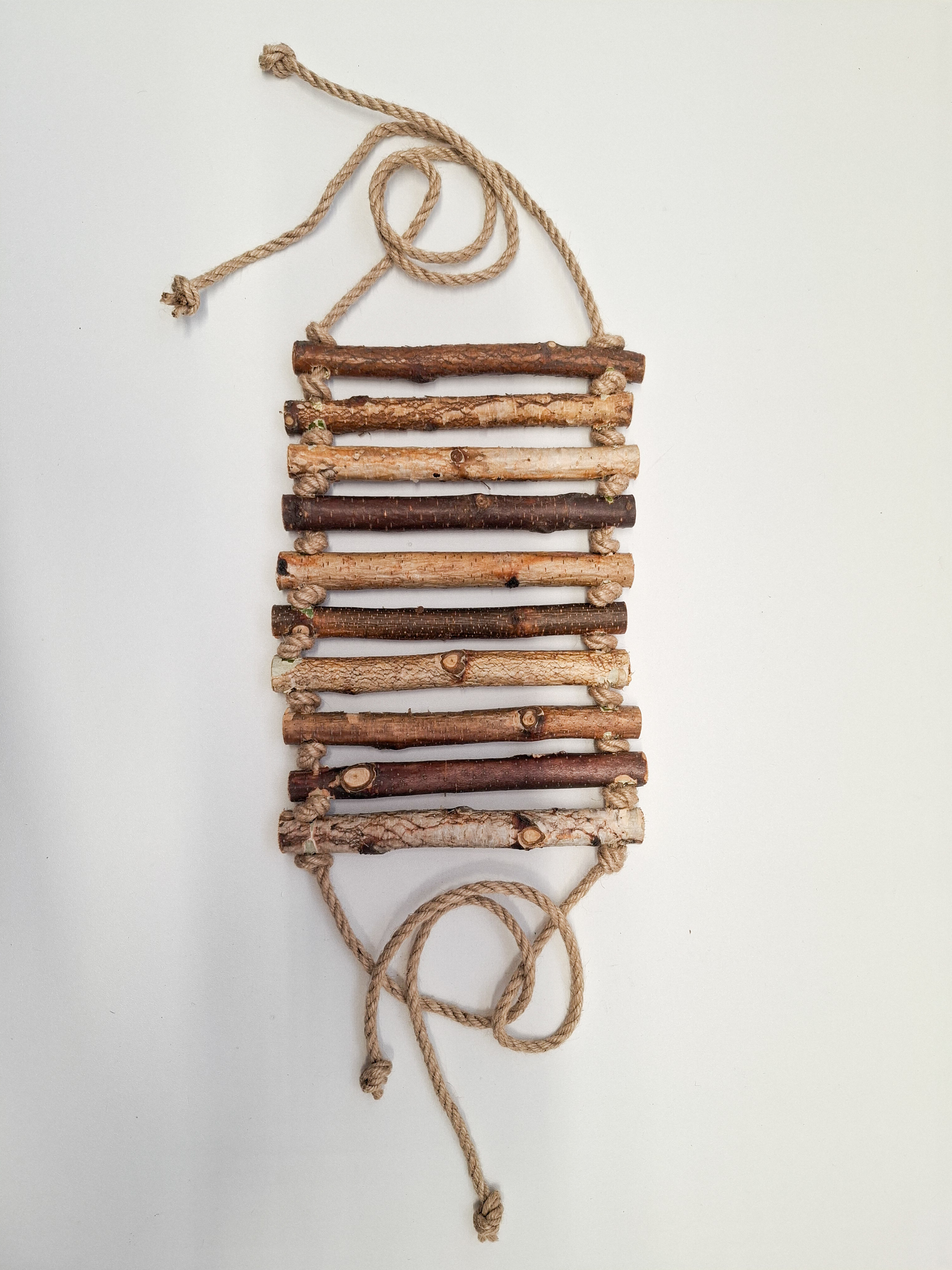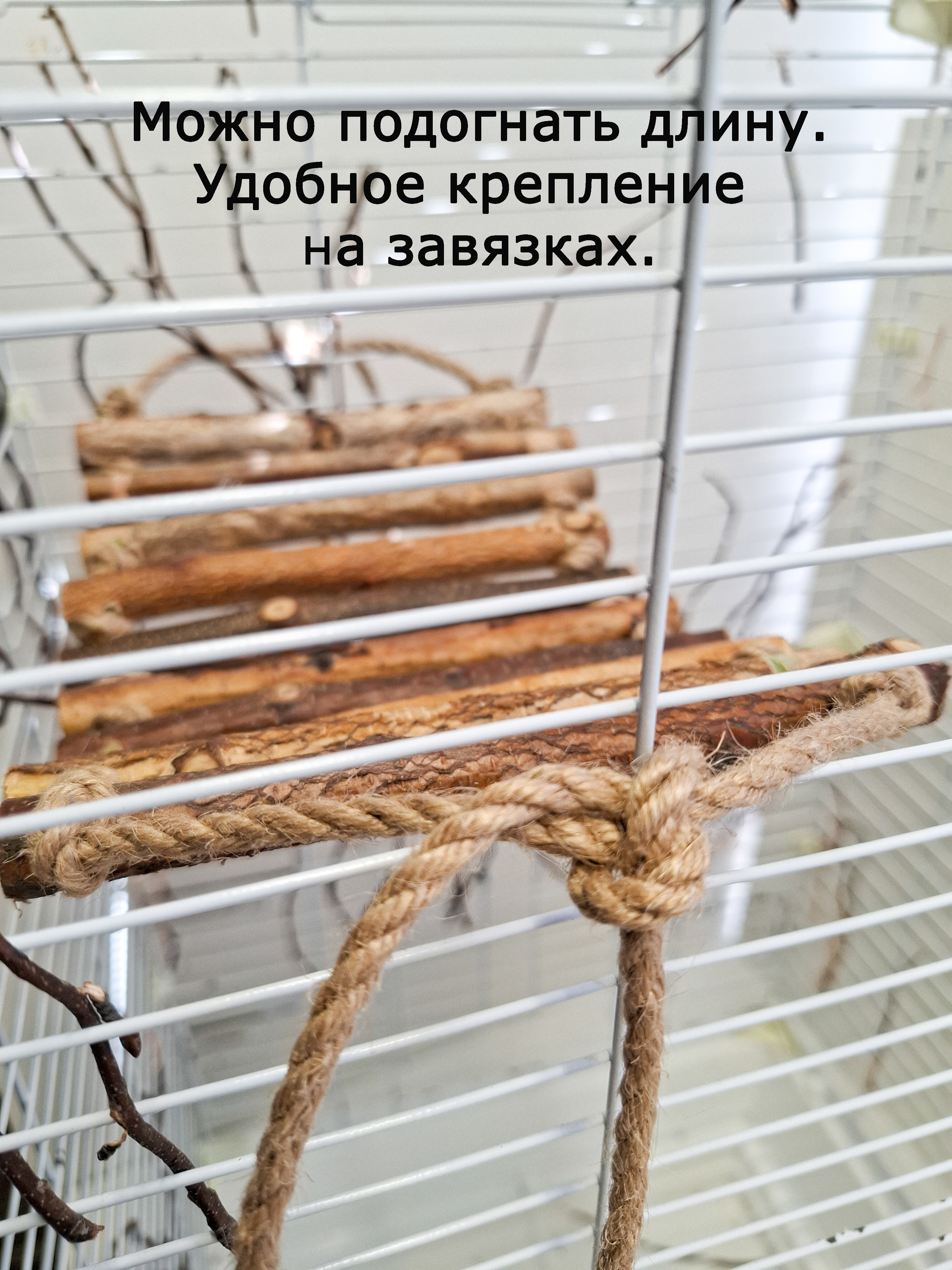 Лестница для попугаев и грызунов связана джутовым канатом 4мм без использования клея. Отличается гибкостью.