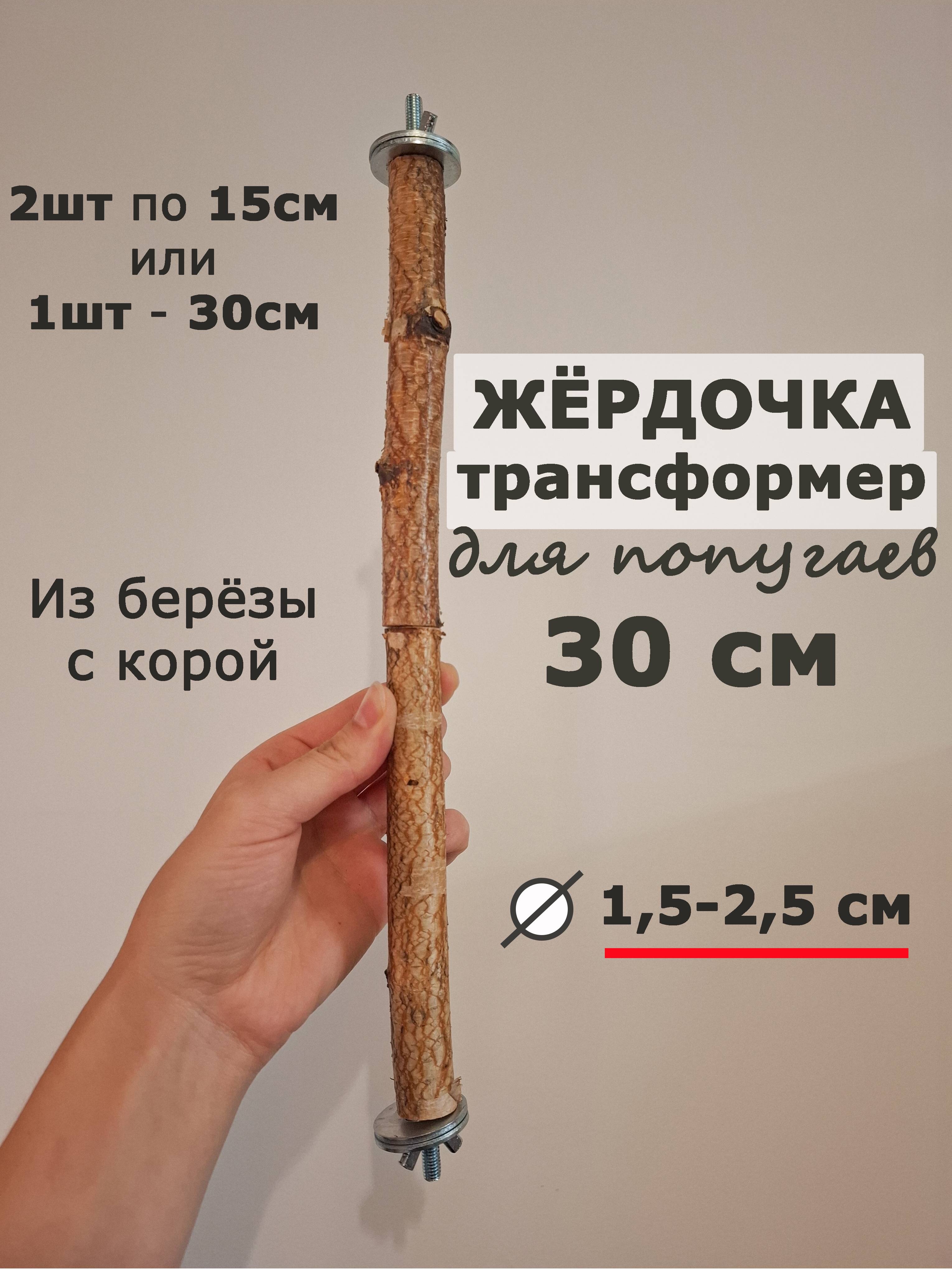 Для попугаев жердочки – это не просто аксессуар, а необходимый элемент для полноценного развития и ежедневного счастья вашего питомца. Поставляется жердочка в картонной упаковке в виде двух штук по 15см, как соединить смотрите на видео в карточке товара. Вы можете установить одну жердь 30см или 2 жерди по 15см.